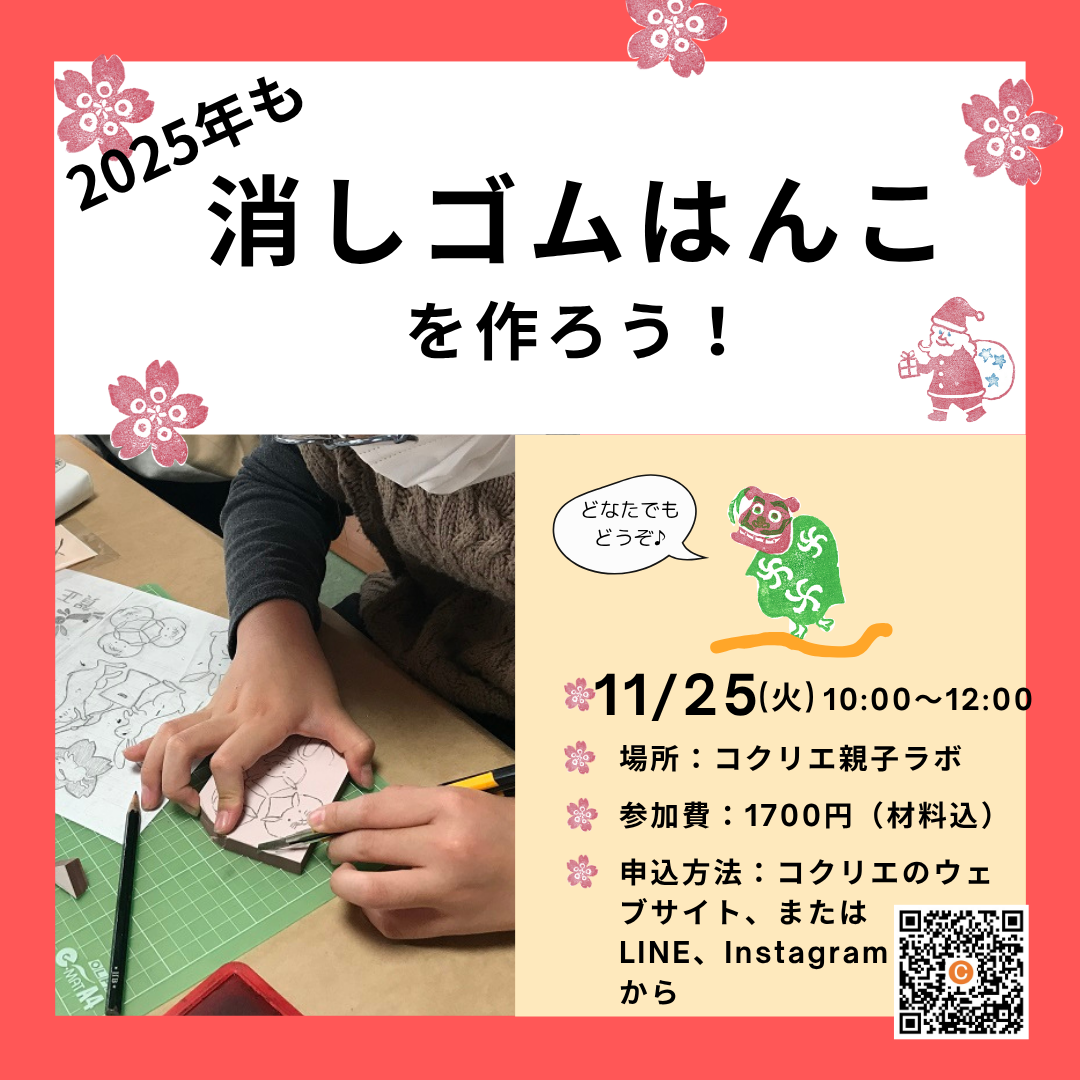 今年もこの季節がやってきました。恒例の消しゴムはんこワークショップ、今年も開催します!